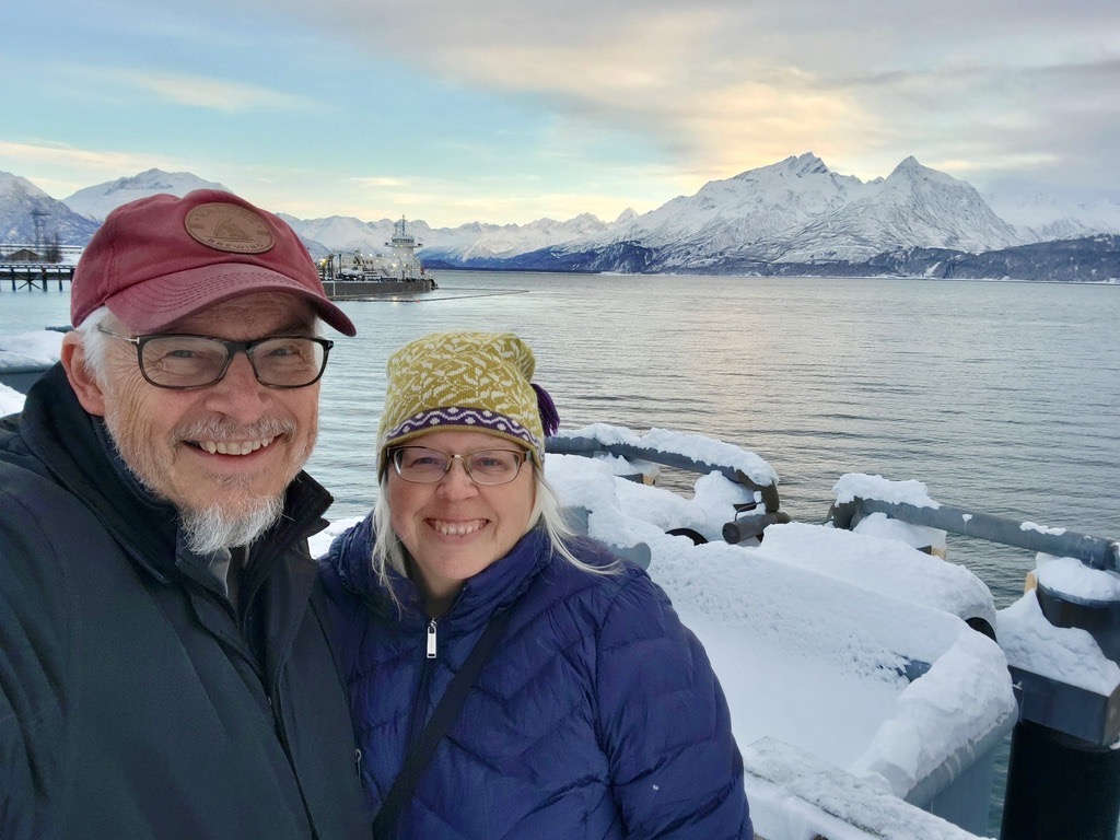 The wonder of Alaska first drew us north when we took a cruise along the Inside Passage to celebrate our 50th birthdays. Then two of our kids moved to the Last Frontier and we have been there many times since. In 2014 we flew to Anchorage, rented a class C RV and explored Alaska from Homer to Denali to Skagway. In 2017 we did a 7800-mile, 3-week road trip from Minnesota to Alaska and back with our Aliner pop-up camper. In 2021 we flew to Fairbanks for our daughter’s wedding, outside, in the snow, a beautiful wedding. And there have been other trips where we brought family and friends along so they could experience Alaska as well.