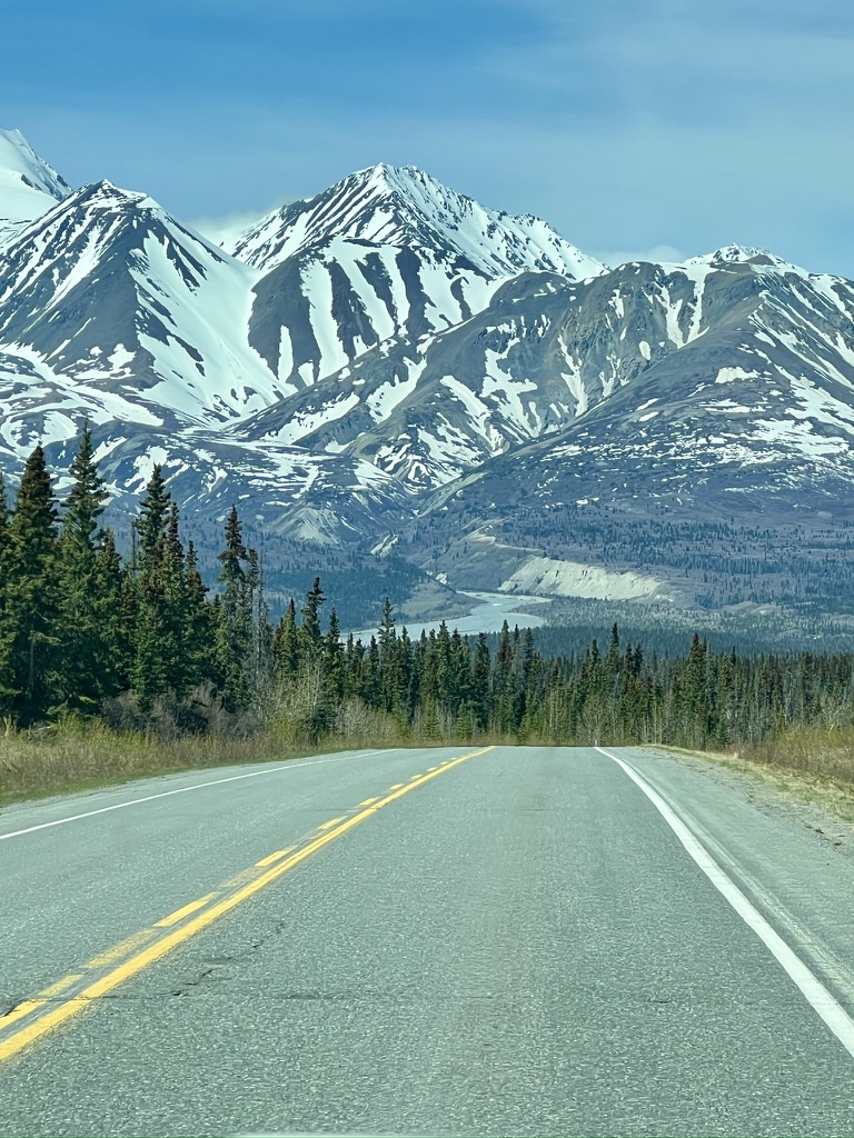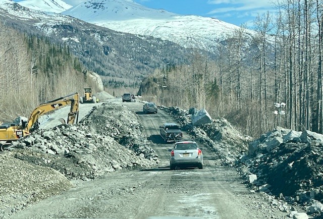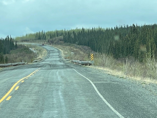The stretch of Alaska Highway from Kluane to Tok, AK is notoriously bad. On the Canadian side there are frost heaves and much of the road is dirt. In May the US side was actually worse. While there is more pavement there were big potholes within the dips and swells from the frost heaves. The key is to just go slow. If you can average 30 mph you’re doing good.