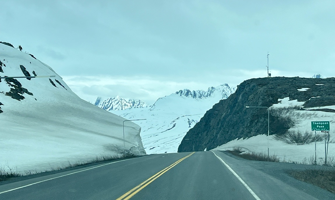 The final stretch going south from Glennallen took us through a couple more construction zones which can be worse than the Alaska Highway. There are no detours, you go through the work zone. Thirty miles from Valdez is Thompson Pass which receives over 50 feet of snow a year and the snow was still deep along the road in late May. It was soon after Memorial Day when we reached Valdez.