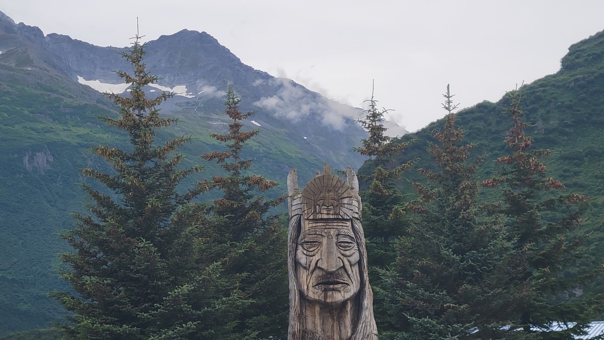 Valdez is so incredibly beautiful. It is situated on a port at the north end of Prince William Sound. All around mountains rise up thousands of feet from the sea. There is just the one road into Valdez which descends from Thompson Pass and winds through Keystone Canyon where waterfalls pour down on both sides before reaching this lovely village nestled up against the sea.