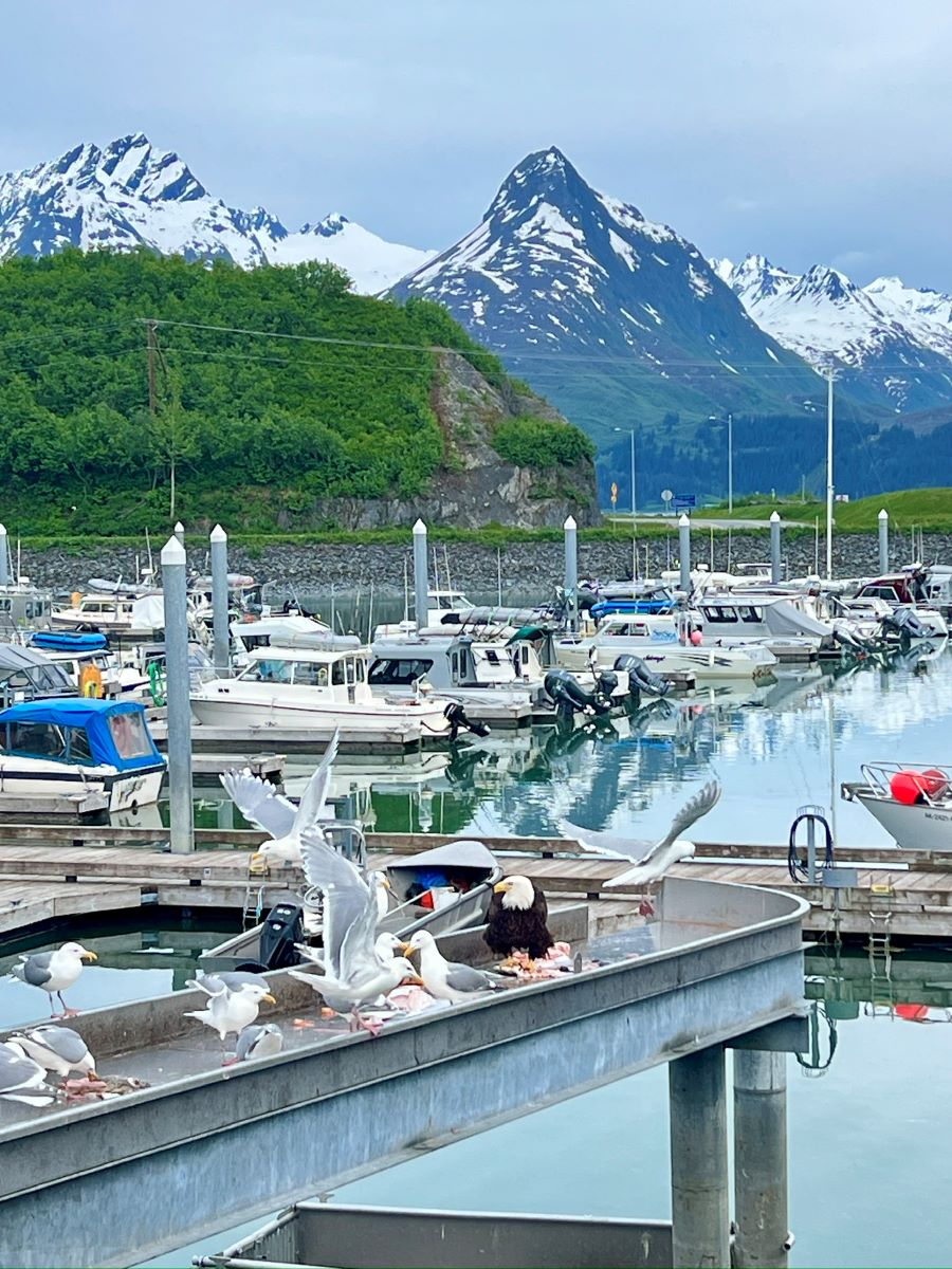 We loved our summer in Valdez spending time with family, helping to grow a garden and exploring the area. Periodically we visited the fish hatchery on the other side of the port to watch the return of the salmon and to observe the wildlife that showed up to greet them. We also took a few expeditions to other parts of Alaska, including a couple visits with our son in Fairbanks.