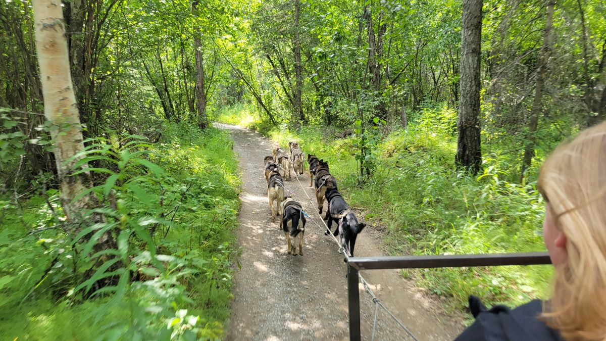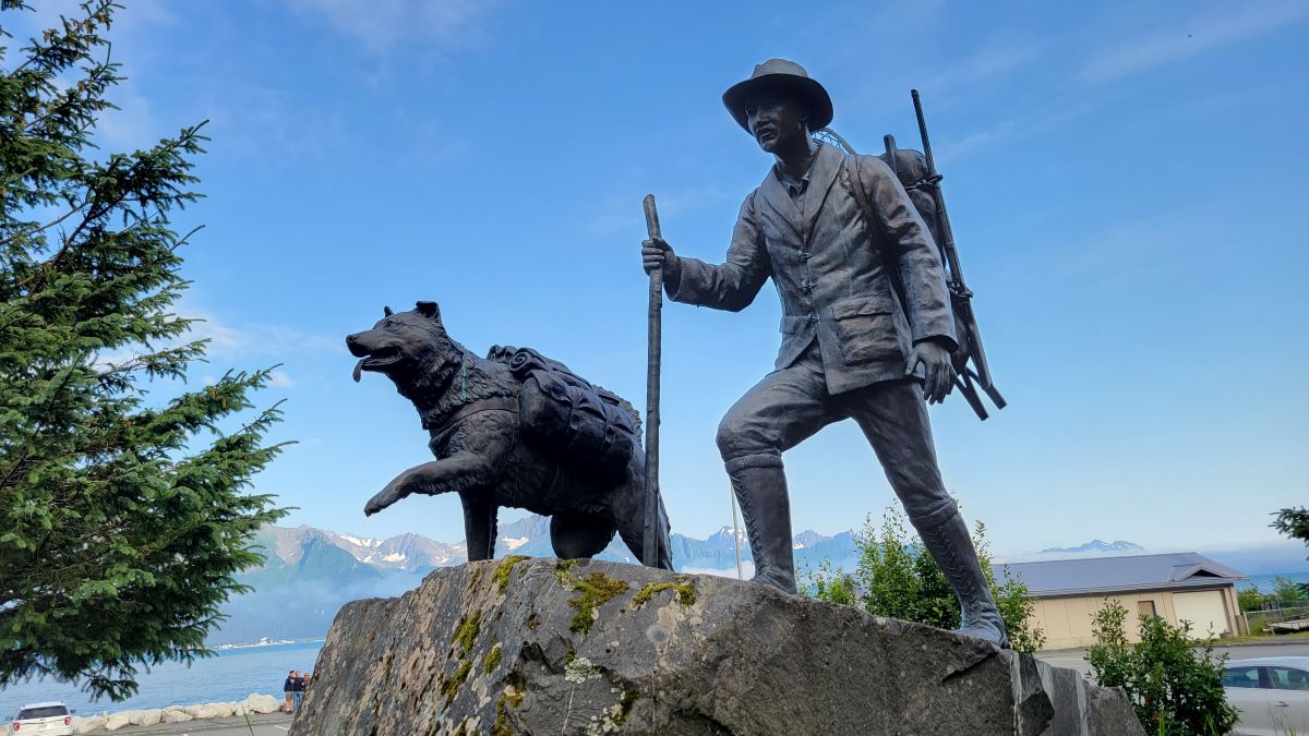 On another expedition we boarded a ferry in Valdez with our truck and enjoyed a beautiful boat ride to Whittier. After checking out the town we headed west through the tunnel and then down to Seward for a couple days. There we saw the start of the Historical Iditarod Trail that stretches from there to Nome. The ceremonial start of the Iditarod Sled Dog Race is in Anchorage and we saw that site as well. From Seward we drove up to Palmer. We visited the Iditarod Headquarters a few miles west of Palmer and took a sled dog cart ride with Iditarod musher Riley Dyche. Two of the dogs pulling the cart were actually from our son’s kennel, Riley borrowed them for the summer, so it was nice to meet the dogs as well.