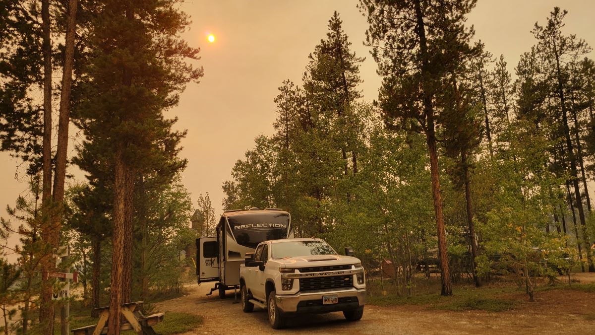 The ice was off Kluane Lake when we came back through and the waves were impressive. Hi Country in White Horse was another repeat stay. We took a different route back through Canada, turning south at Watson Lake onto the Cassiar Highway. It was at Watson Lake that we had our closest fire encounter on the return trip and we timed our arrival for when it looked like we would have our best chance of getting through. It had been closed many days. At the Baby Nugget campground near Watson Lake we had ash falling on our camper. Soon after turning onto the Cassiar the next morning we were picked up by a pilot truck that kept a brisk pace as we drove past the area of the fire.