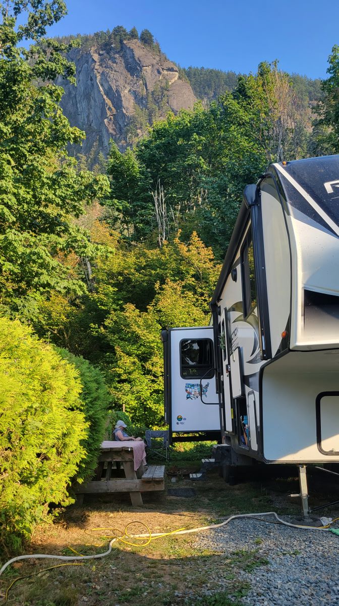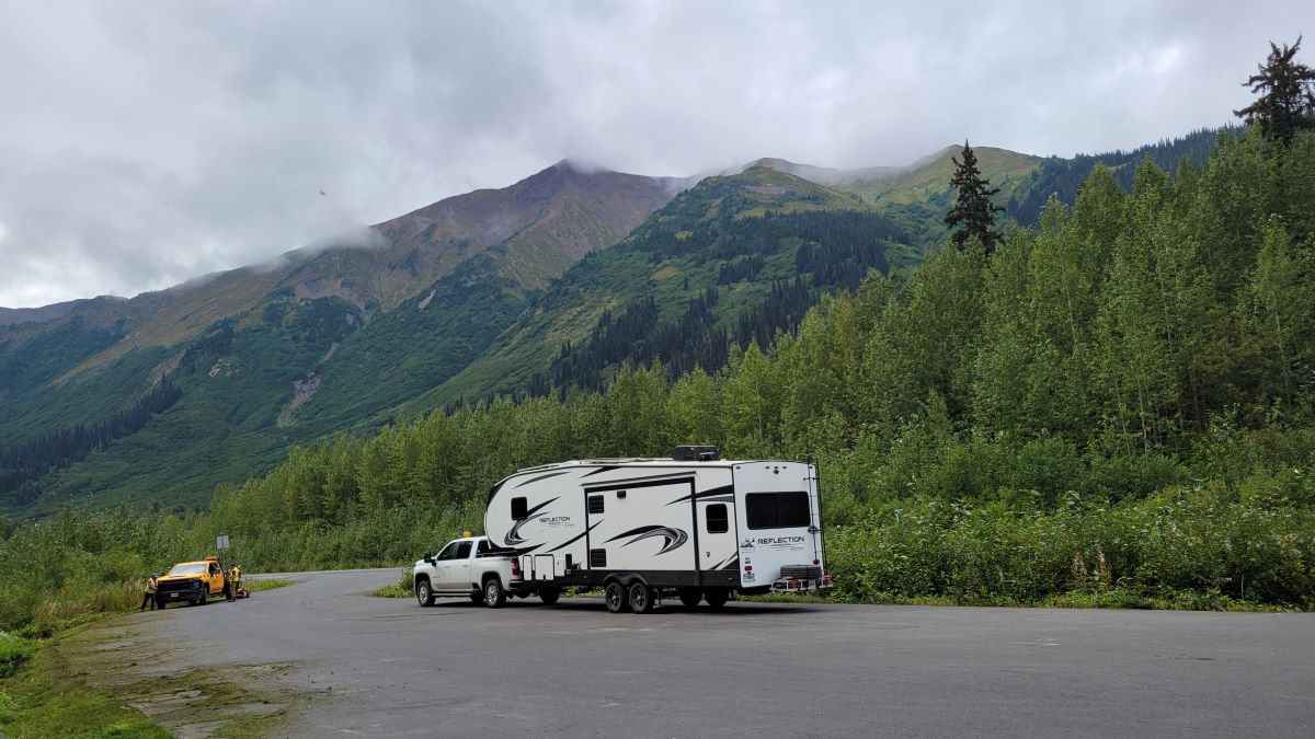We had a fair amount of room at Eagles Rest but the other three were very tight. Valdez RV Park was especially crammed as it got into salmon season. It was built over 30 years ago when campers were smaller and didn’t have slides. The new owners are aware of the problem and do their best to accommodate guests, but when every site is taken it’s a problem. One of the campers that parked behind us backed into our cargo tray and damaged it but we didn’t notice till later. We were able to straighten out the tray and rivet it back together.
